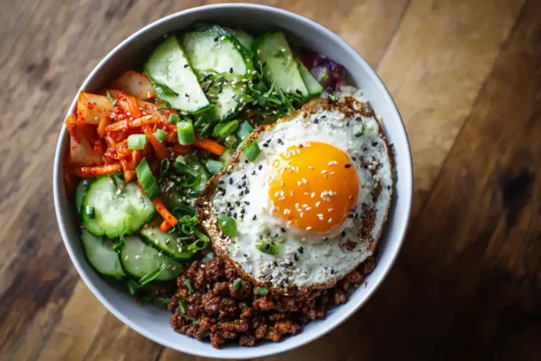 Fresh toppings like cucumbers, kimchi, or carrots add brightness, while rice gives a hearty base. Optional fried eggs make the bowl richer and creamier. These simple ingredients echo the style of Hot Honey Chicken Rice Bowl—simple, available everywhere, yet packed with flavor.